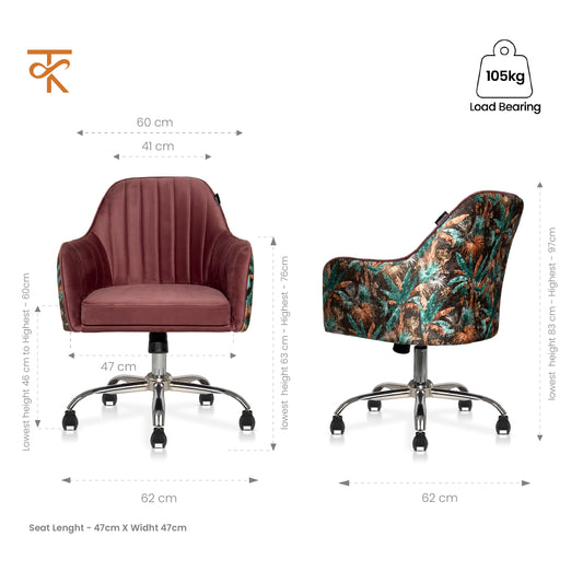 Sherni Accent Chair For Office - Adjustable Height, Tilt Lock, 360° Swivel, Heavy Duty Metal Base (Mauve Pink)
