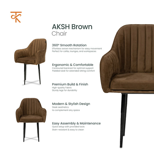 Aksh Velvet Swivel Accent Chair - Premium Lounge Chair for Living Room, Bedroom & Decor, 6 Months Warranty - Brown