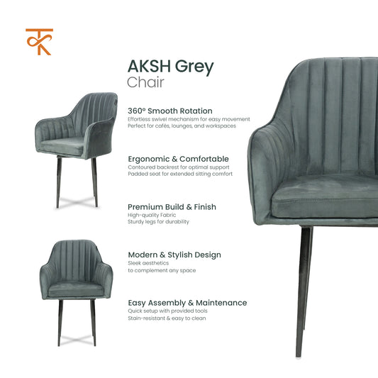 Aksh Velvet Swivel Accent Chair - Premium Lounge Chair for Living Room, Bedroom & Decor, 6 Months Warranty - Grey