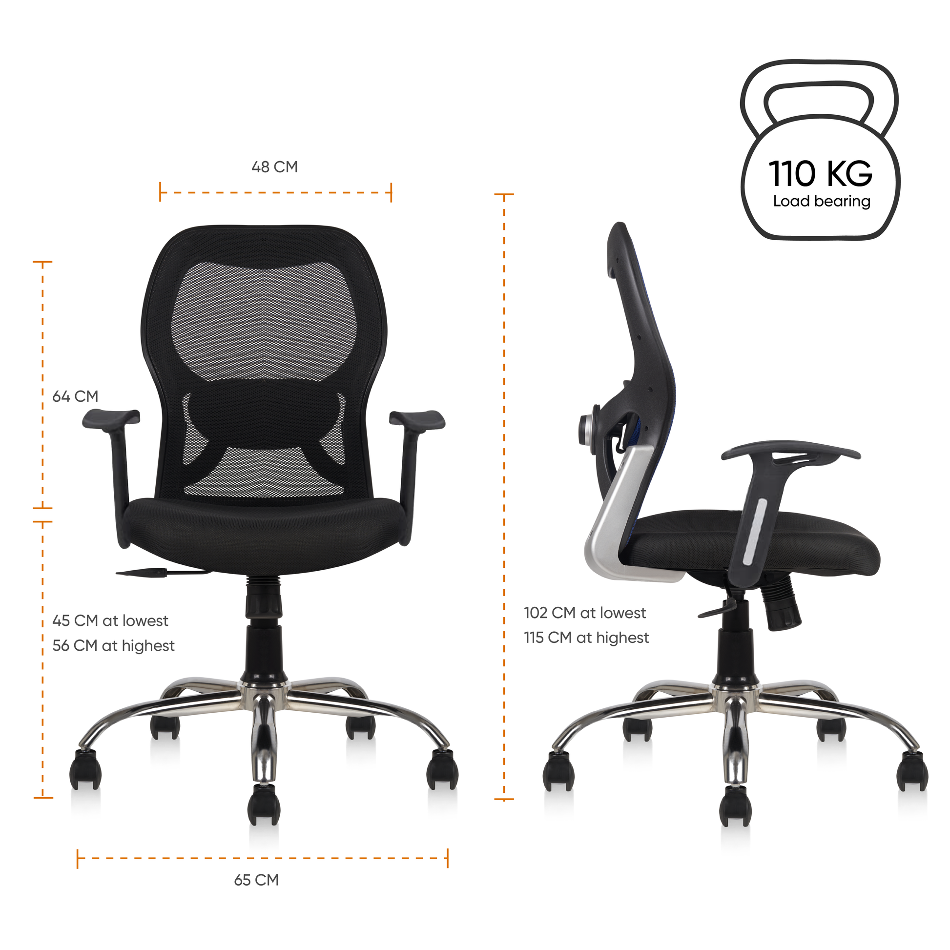 Matrix Mid Back Mesh Office Chair - Ergonomic with Fixed Armrest & Tilt Lock, Height Adjustable, 6 Months Warranty (Black)