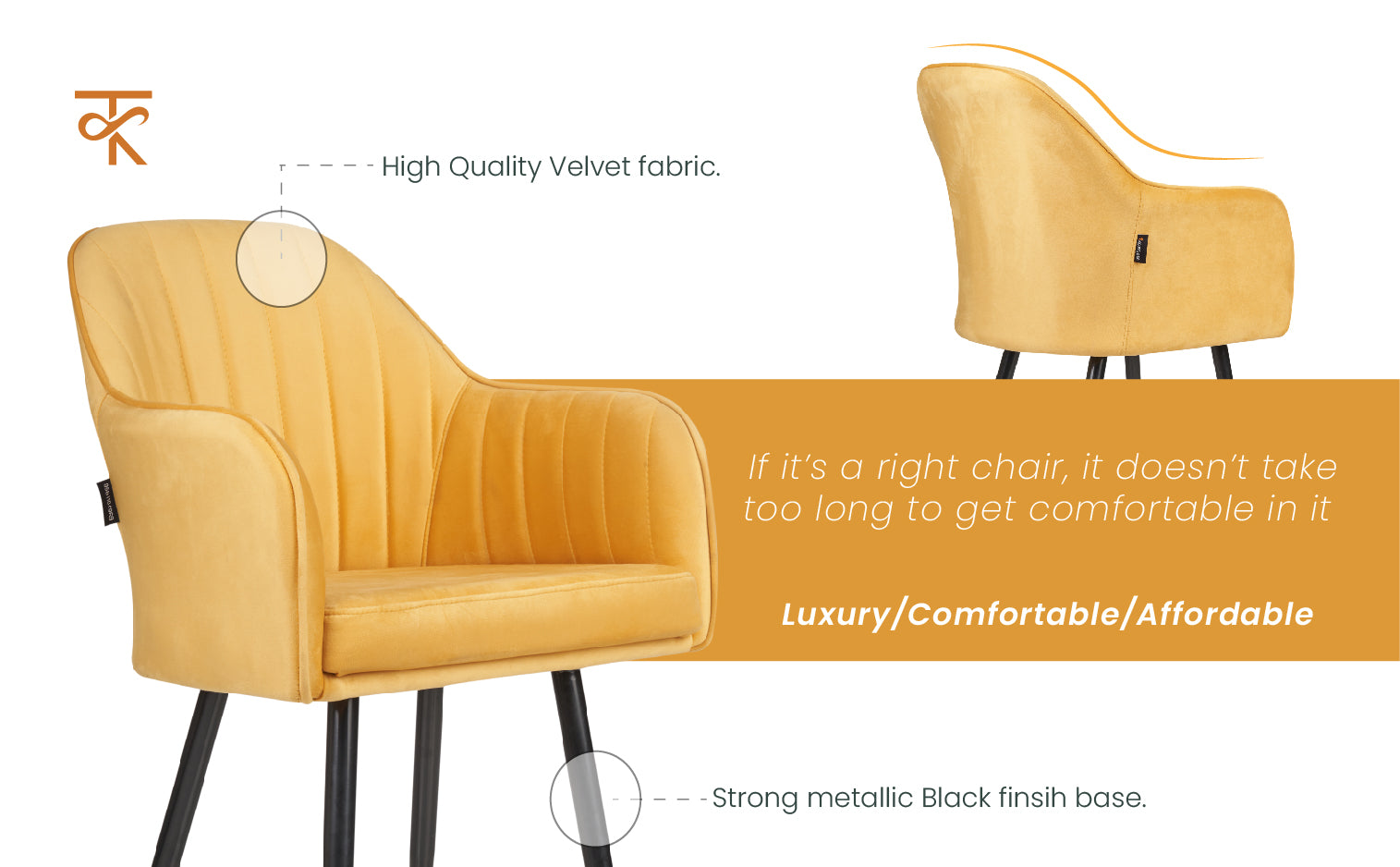 Morni Cafe Chair - Stylish Velvet Fabric with Cushioned Seat, for Home Décor & Restaurant- Heavy-Duty Rose Gold Legs , 6 Months Warranty (Pack of 2)