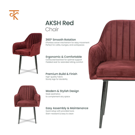 Aksh Velvet Swivel Accent Chair - Premium Lounge Chair for Living Room, Bedroom & Decor, 6 Months Warranty - Red