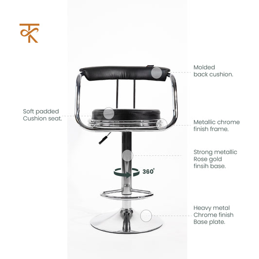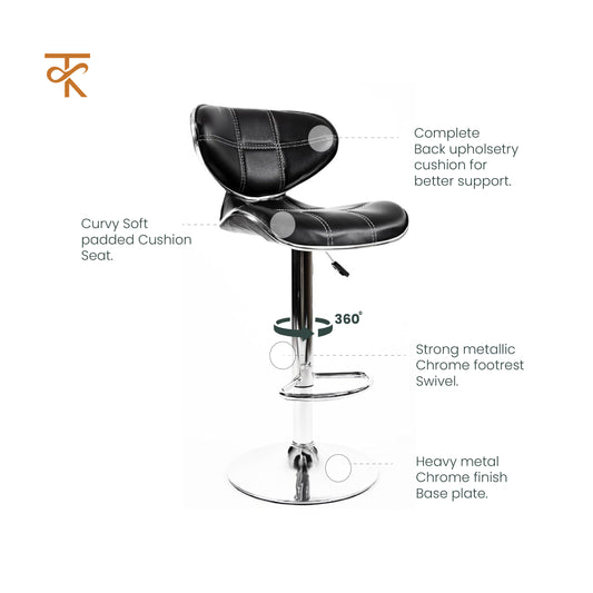 KBC Bar Chair – Adjustable High Barstool with 360° Swivel, Leatherette Upholstery & Chrome Base – For Kitchen, Pubs, Office – 6 Months Warranty-Black (Pack of 1)