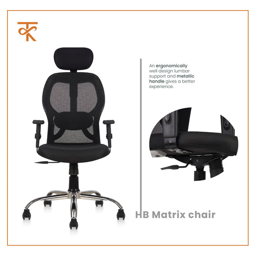 Matrix High Back Ergnomic Office Chair - Adjustable Lumbar Support & Headrest, Breathable Mesh, 360° Swivel, Height/Tilt Adjustment (Black)